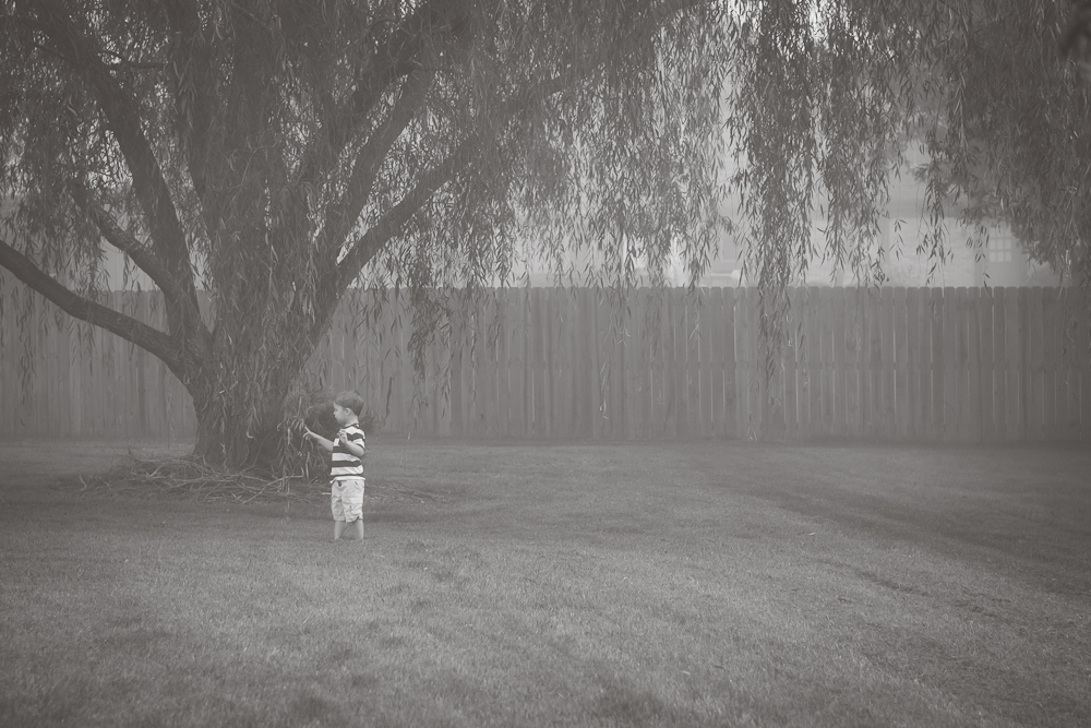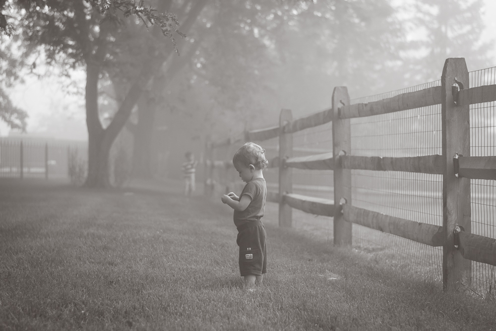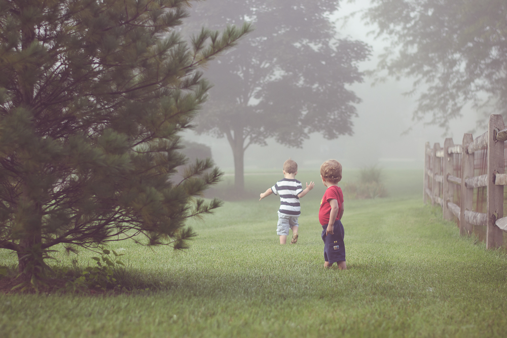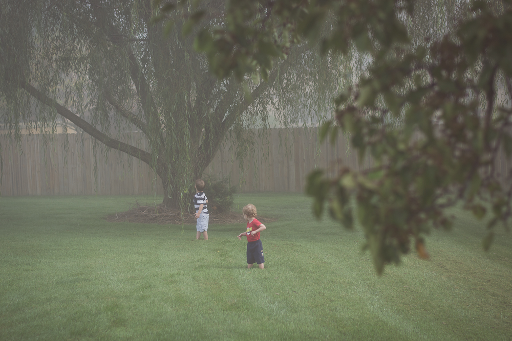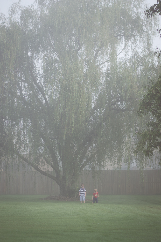 It was so cute watching the boys tread carefully through the dewy grass, and how it took us almost an hour to walk around the edge of our property line. It’s just under an acre so it’s really not that big, unless you are a one and two-year-old (almost three) and you are exploring a new and magical foggy land. I will never forget this day–the day we had the most amazing adventure in our own backyard. It makes my heart smile just thinking about it.