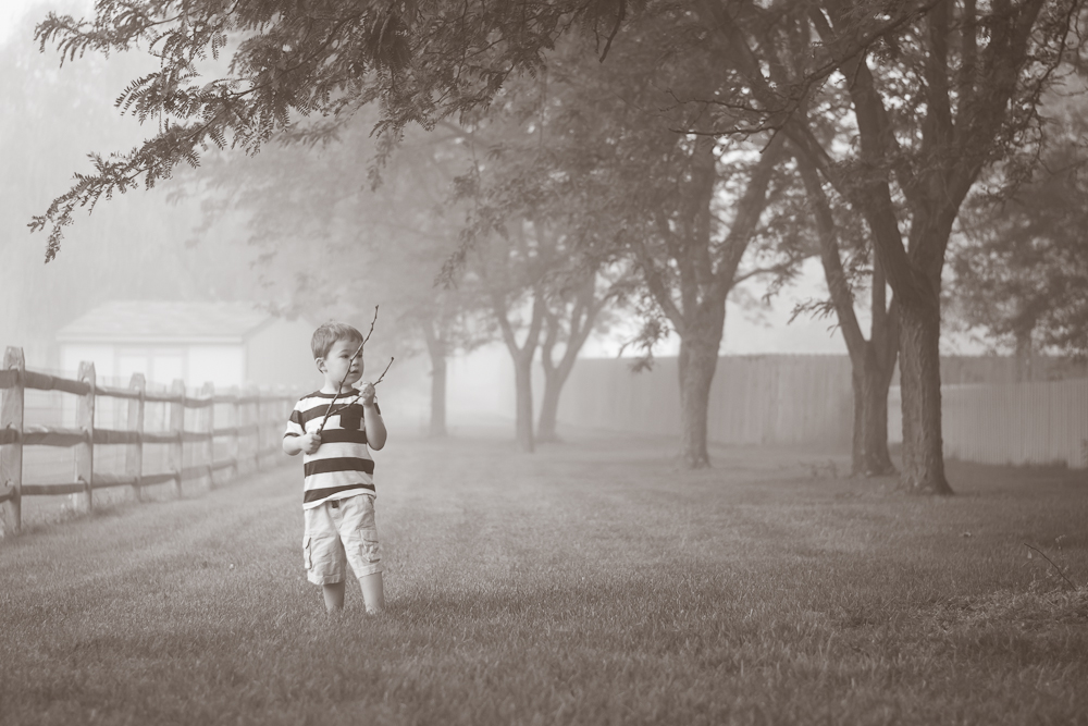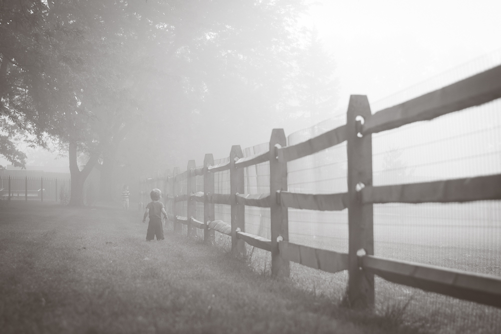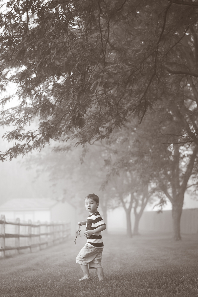 These were from a foggy day this past summer. I remember looking outside and thinking it would be so fun to go out and explore our back-yard in the fog (we were still settling in to the new place at the time). But there is always so much to do, and I knew we’d never even get dressed and out in time before the fog lifted, so we set to the daily grind. The fog hung around for some time, which surprised me, because anytime fog settled in the mornings in Maryland, it was gone within the hour. I simply couldn’t take it anymore. We were dressed and fed and pottied, so we headed out, all in bare feet. Oh those sweet summer, barefoot days!
