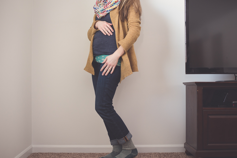 2. A two-fer, cause I just couldn’t decide. Standing behind the side-table to hide from / watch a show.